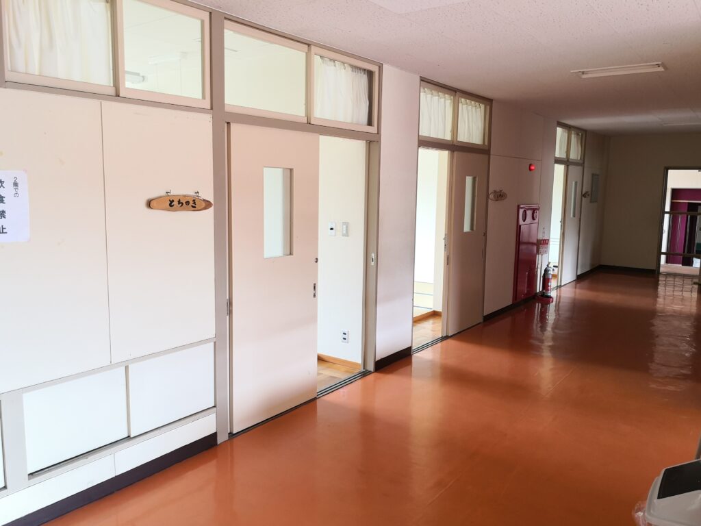 「おっぱら自然体験センター」は廃校になった小学校を利用した自然体験活動施設です。教室を宿泊施設しに改装し、体育館やグラウンドも含めて貸し切りで林間学校を行います。